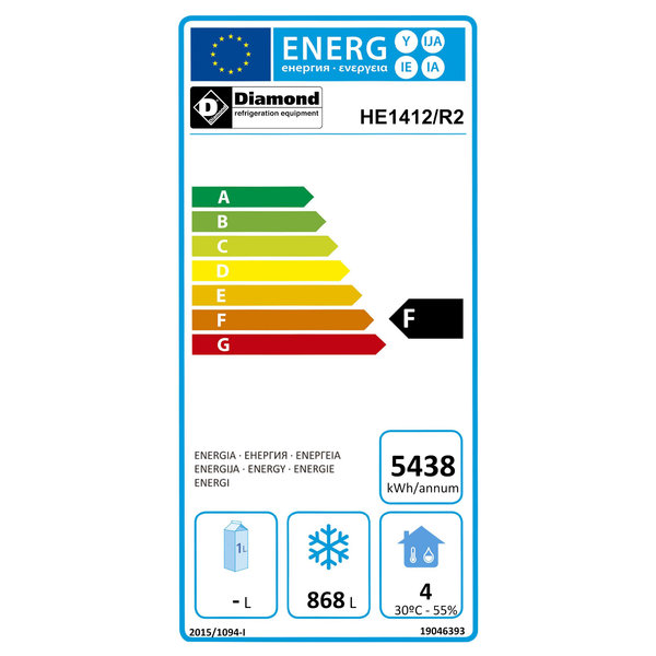 Vrieskast | 1100L | RVS | -15°C/-22°C | Geventileerd | 0.74kW | 1385x720x2065(h)mm
