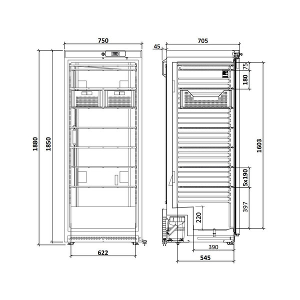 Vrieskast | 567L (2/1 GN) | Wit | -18°C/-22°C | Statisch | 0.3kW | Wielen | 750x705x1880(h)mm