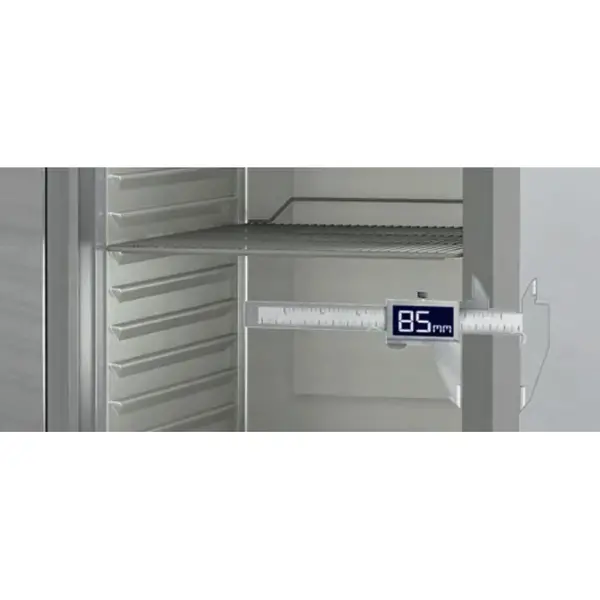 Daarnaast zorgen de verstelbare poten voor stabielere plaatsing, ook op enigszins ongelijke ondergrond, en verstelbare hoogte (ca. 65 mm). De vrieskast wordt bovendien geleverd inclusief 3 verstelbare 2/1 GN-formaat roosters, voor flexibele indeling van de binnenruimte. Op aanvraag kun je deze vrieskast bestellen met voetpedaalopener, zodat je ook met je handen vol de koelkast kunt openen.