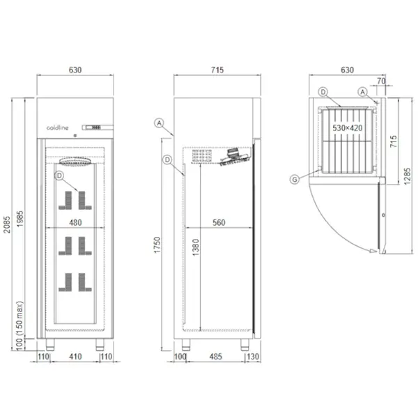 Binnenafmetingen: B 480 x D 560 x H 1380 mm