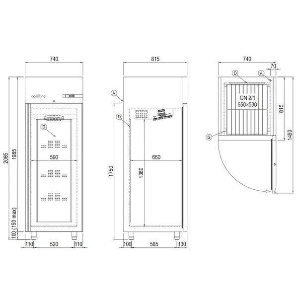 Het apparaat heeft een interieur dat speciaal is afgestemd op accessoires van 2/1 GN-formaat, zodat roosters, (bak)platen en deegkratten met dezelfde maat eenvoudig in de geleiders kunnen worden geschoven. Dit maakt het apparaat bijzonder geschikt voor horecagelegenheden die veel werken met deze universele maat.