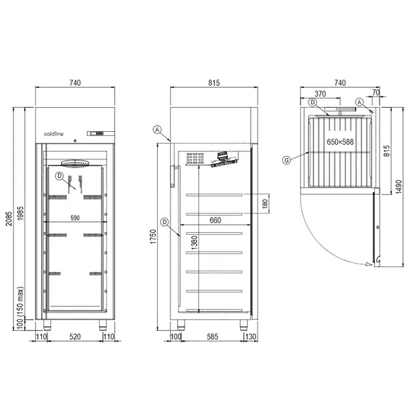 Binnenafmetingen: B 590 x D 660 x H 1380 mm