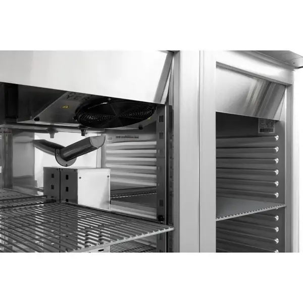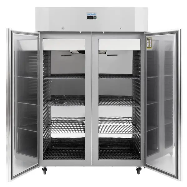Met een enorme bruto inhoud van 1400 liter (netto 980 liter) biedt de Polar U-SERIE rechtopstaande dubbeldeurs vrieskast de ideale oplossing voor horeca gelegenheden die grote hoeveelheden ingrediënten willen opslaan met een minimaal stroomverbruik.