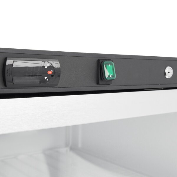 Deze professionele vrieskast heeft een ruime capaciteit van 626 liter en is uitgevoerd in zwart met een glazen deur met slot, zodat je de inhoud kunt bekijken zonder te openen. De vriezer is voorzien van zes vaste roosters die zorgen voor voldoende opslagruimte en goede ventilatie. De temperatuur is nauwkeurig instelbaar via een elektronische regelaar met digitaal display, met een temperatuurbereik van -18 tot -22 graden Celsius. De snelvriesfunctie helpt om snel de gewenste temperatuur te bereiken. De vriezer is geïsoleerd met een compacte beschermende isolatie en werkt met het milieuvriendelijke koelmiddel R290. Dankzij verstelbare poten en wielen is verplaatsen eenvoudig. De behuizing is gemaakt van gecoat staal, wat reiniging vergemakkelijkt. De binnenkant kan na ontdooien eenvoudig worden schoongemaakt. Dit apparaat is ontworpen voor gebruik in professionele keukens met een maximale omgevingstemperatuur van 25 graden Celsius.