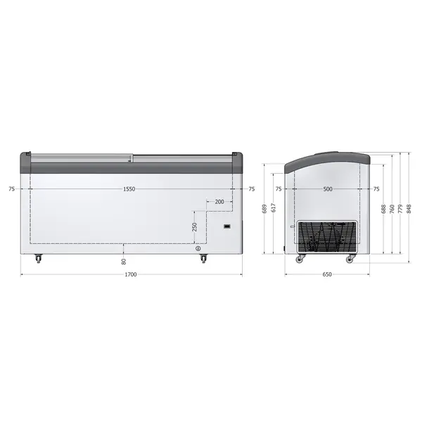Vrieskist | FOCUS | 484L | Wit/Grijs | -16°C/-23°C | Statisch | Schuifdeksels | Wielen | 1700x650x850(h)mm