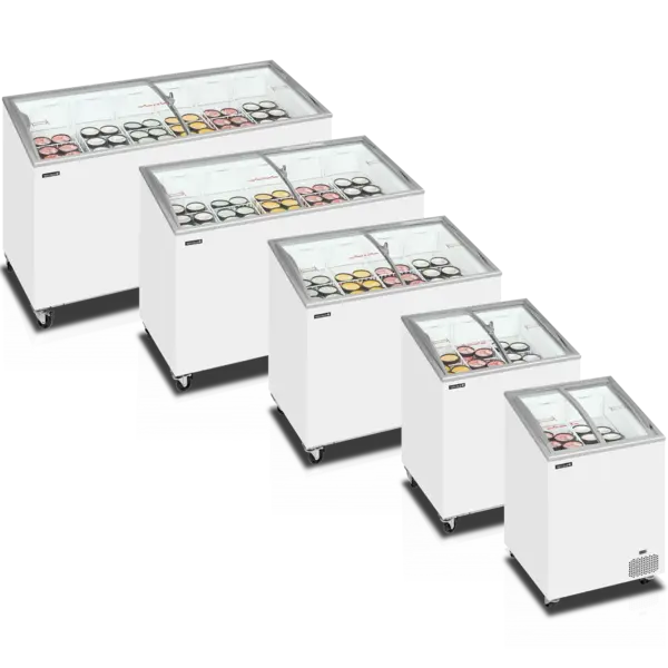 De Tefcold IC-serie biedt professionele vrieskisten met glazen schuifdeksels voor perfecte presentatie van ijs en andere diepvriesproducten.