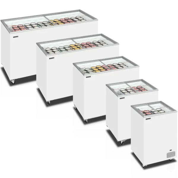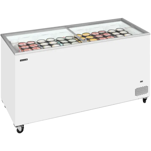 De Tefcold IC-serie biedt professionele vrieskisten met glazen schuifdeksels voor perfecte presentatie van ijs en andere diepvriesproducten.