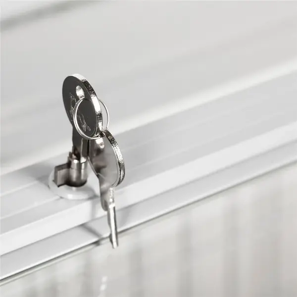 Deze uitvoering heeft iets hellend geplaatste gebogen schuifdeksels, voor beter zicht op de inhoud, met nette afgeronde grijze afwerking aan de bovenkant, welke ook als stootbescherming kan dienen.