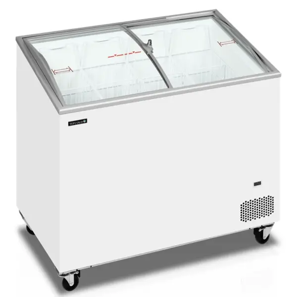 De Tefcold ICECREAM-serie biedt professionele vrieskisten met glazen schuifdeksels voor perfecte presentatie van ijs en andere diepvriesproducten.