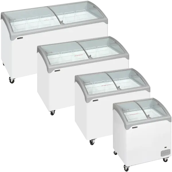 De NIC-serie van Tefcold biedt een premium lijn vrieskisten met een elegant ontwerp, gekenmerkt door prachtige gebogen hoeken en afgeronde randen. Deze vrieskisten zijn de ideale keuze voor de presentatie van ijslolly’s, schepijs en andere diepvriesproducten. De serie is bovendien beschikbaar in diverse breedtes en uitvoeringen met zowel vlakke als gebogen glazen schuifdeksels, zodat er voor elke winkelinrichting een perfecte match is.
