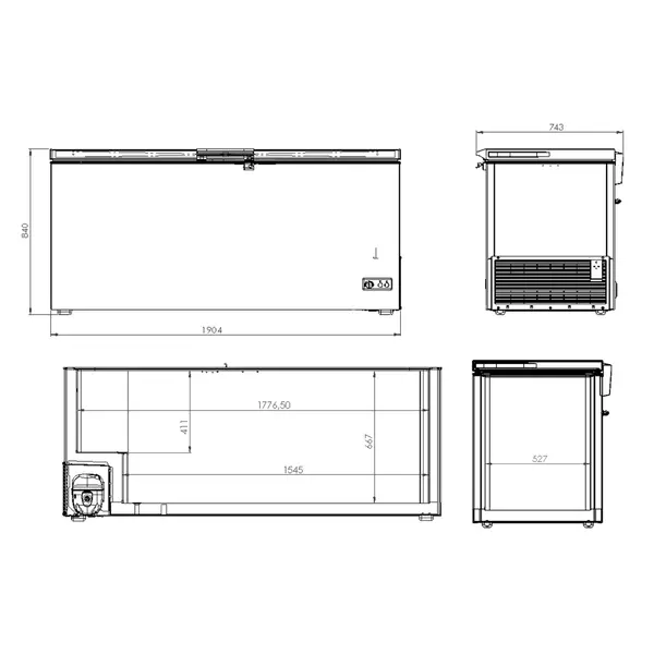 Vrieskist | 621L | Wit | 0°C/-24°C | Statisch | Kanteldeksel | 1904x743x840(h)mm
