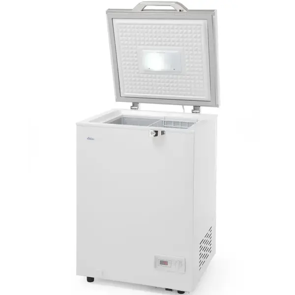 Dankzij de 70 mm dikke isolatie en de geforceerde koeling blijven de temperaturen stabiel tussen -18°C en -26°C, zodat je producten optimaal bewaard blijven. Het apparaat is voorzien van handmatige ontdooiing, een digitale temperatuurweergave en bediening, zodat je volledige controle hebt over de koeling.