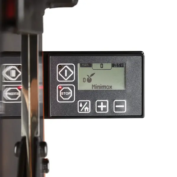 Verder is de MINIMATIC standaard voorzien van een gebruiksvriendelijk digitaal bedieningspaneel met o.a. vruchtenselectie, vruchtenteller en schilopvangindicator. Via het bedieningspaneel is onder andere ook het aantal te persen vruchten vooraf in te stellen, voor optimale controle en gebruiksgemak.