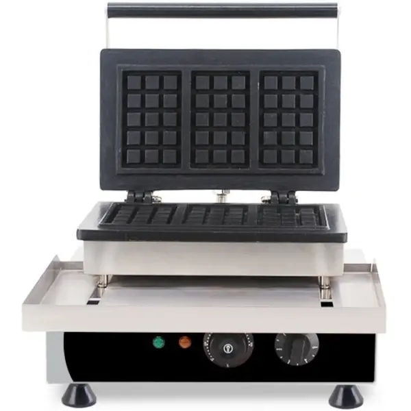 Dit professionele wafelijzer van Combisteel is speciaal ontworpen voor het bereiden van 3 heerlijke Brusselse wafels (125x77x22 mm). Perfect voor koffiezaken, foodtrucks, markten en evenementen. Dankzij het compacte formaat en de krachtige prestaties is dit tafelmodel ideaal voor intensief gebruik in de horeca.