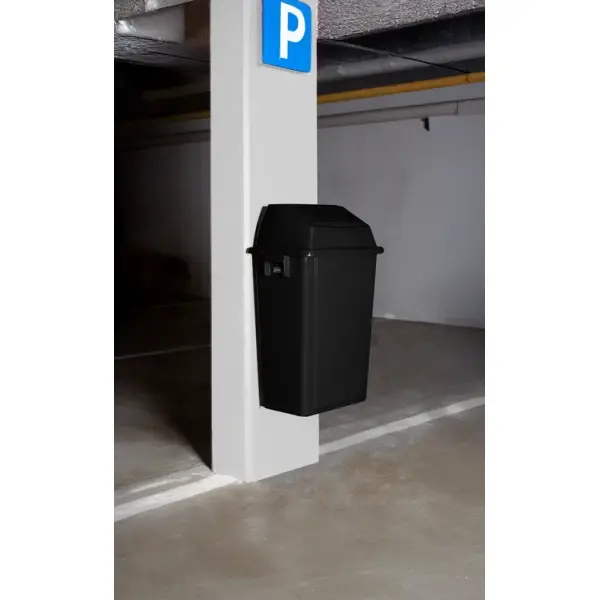 Wandafvalbak | Kunststof (Zwart) | 80L | Tuimeldeksel | Incl. Bevestiging | 460x333x917(h)mm