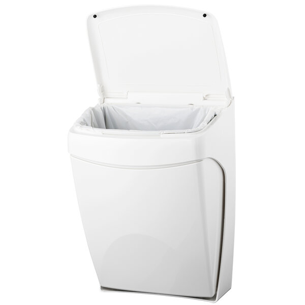 Wandafvalbak | PlastiQline | Kunststof (Wit) | 20L | Klapdeksel (Kniebediening) | 350x250x520(h)mm