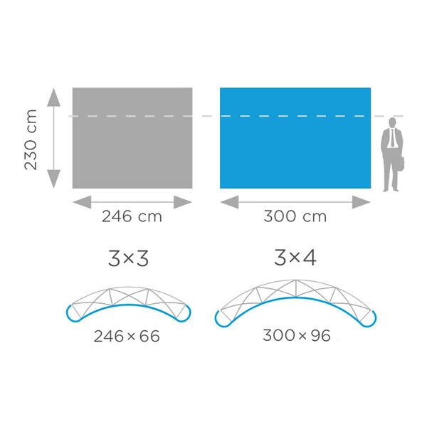 Dankzij het pop-upsysteem kan de wand binnen enkele minuten worden gemonteerd of gedemonteerd en de wand wordt geleverd inclusief vervangbare magnetische PVC-panelen (voor- én zijkanten), zodat er verschillende afbeeldingen op hetzelfde frame kunnen worden gebruikt.