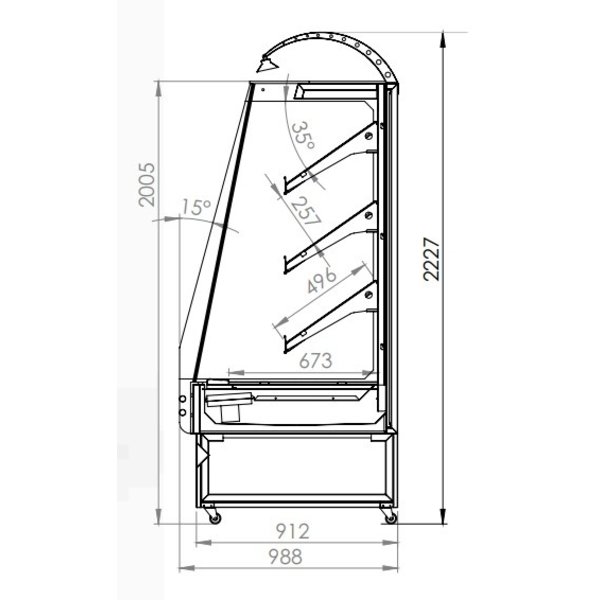 Deze gekoelde groente- en fruitdisplay met vier etages met glazen deuren standaard uitvoering met plug-in motor. Het moderne design en waardevolle bouwmaterialen maken het een ideale oplossing voor de verkoop van producten. Het hele lichaam van de bovenstaande vitrine is gemaakt van roestvrij staalplaat en aan de buitenkant voorzien van dubbel veiligheidsglas die aan de ene kant de vitrine zeer goed isoleren en aan de andere kant er zeer indrukwekkend uitzien.