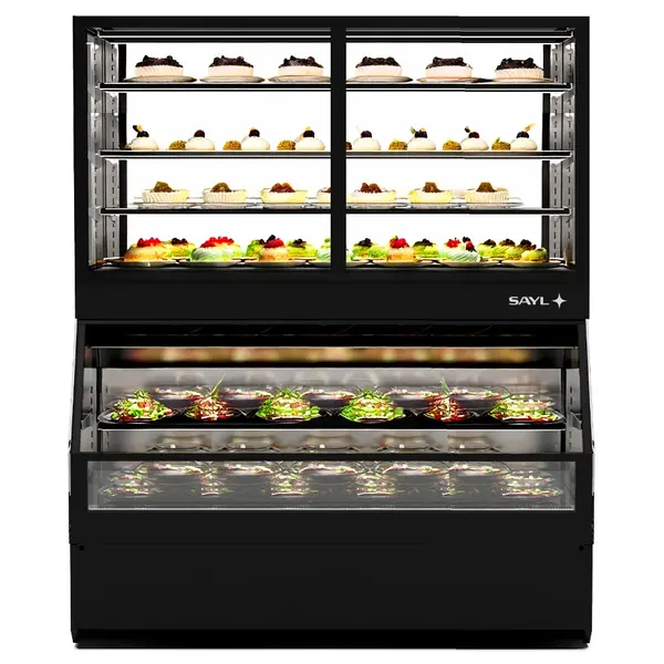 De unieke INTEGRA COMBI serie van het Spaanse SAYL biedt enkele en dubbele wandmeubels, waarbij per displayruimte kan worden gekozen voor een gekoelde, verwarmde of neutrale uitvoering. Hiermee biedt de INTEGRA COMBI serie ongekende flexibiliteit en de mogelijkheid om een volledige ruimte met uniforme uitstraling in te richten met lage en hoge displayruimten, voor zowel verwarmde als gekoelde producten én producten die zonder verwarming of koeling kunnen worden gepresenteerd.