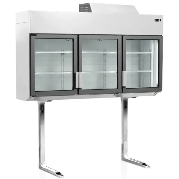 De solide standaard in hoogwaardig RVS zorgt dat het apparaat stevig staat en heeft telescopische poten, waardoor de hoogte van het koelgedeelte naar wens is te verstellen, bijvoorbeeld om perfect aan te sluiten bij een Tefcold SERIE SFI supermakt koel-/vrieskist.