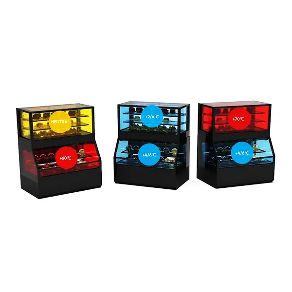 De unieke INTEGRA COMBI serie van het Spaanse SAYL biedt enkele en dubbele wandmeubels, waarbij per displayruimte kan worden gekozen voor een gekoelde, verwarmde of neutrale uitvoering. Hiermee biedt de INTEGRA COMBI serie ongekende flexibiliteit en de mogelijkheid om een volledige ruimte met uniforme uitstraling in te richten met lage en hoge displayruimten, voor zowel verwarmde als gekoelde producten én producten die zonder verwarming of koeling kunnen worden gepresenteerd.