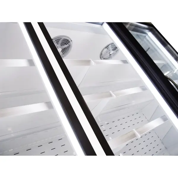 Het grote glasoppervlak in de deuren, de interne dubbele LED-verlichting in de deuren en de hoogwaardige afwerking van de binnenkant zorgen samen voor optimale zichtbaarheid en perfecte presentatie van de producten in de wandvriezer.