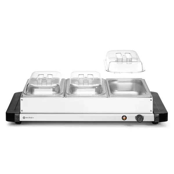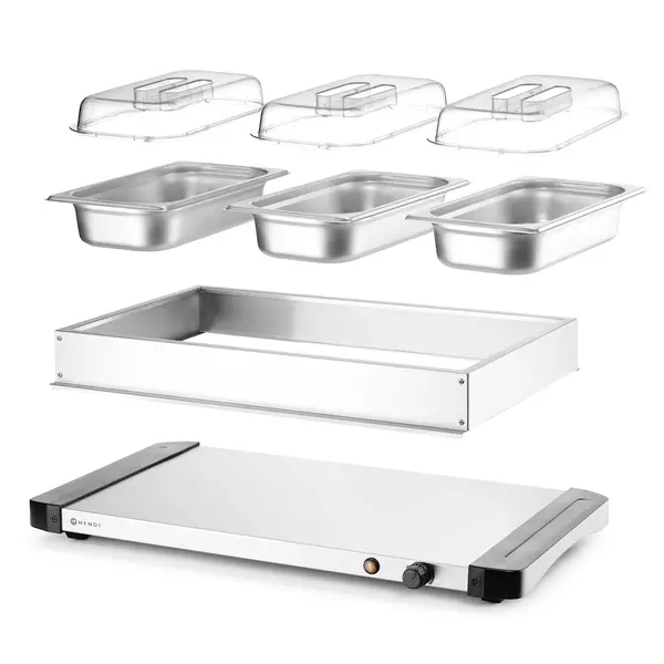 Warmhoudplaat | 3x 1/3 GN | 40°C/75°C | 0.4kW (230V) | Incl. GN-Bakken + Deksels | 657x381x161(h)mm