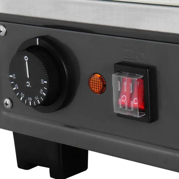 Met de draaiknopbediening is de temperatuur eenvoudig in te stellen en het speciale waterbakje boven de verwarmingselementen zorgt voor passieve bevochtiging, zodat ook delicatere producten minder snel uitdrogen. En de thermometer aan de voorkant en aparte lichtschakeling zorgen voor aanvullend gebruiksgemak.