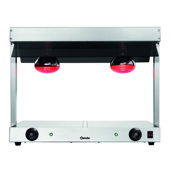 - Dubbele warmtewerking – De afzonderlijk regelbare infraroodlampen en de glas keramische warmhoud platen houden het voedsel warm op de individueel ingestelde temperatuur.