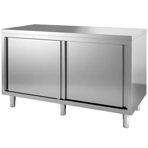 Deze stevige professionele werkbank van CombiSteel heeft een diepte van 700 mm en beschikt over stevige schuifdeuren. De robuuste constructie is volledig uitgevoerd in hoge kwaliteit RVS.