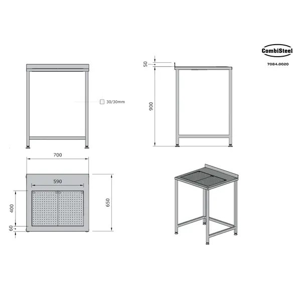 Werktafel | RVS | Lekbak | Achteropstand | Zelfmontage | 700x650x900(h)mm