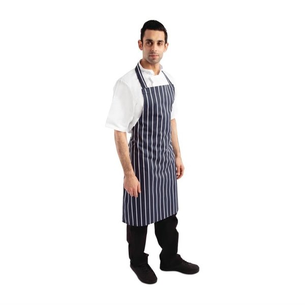 - Zorg dat uw kleren altijd beschermd worden tegen spatten en knoeien, met dit Whites blauw-wit gestreepte uniseks halterschort van hoge kwaliteit. Met een lengte van maar liefst 965mm biedt het halterschort bijzonder veel bescherming tijdens het koken en het voorbereiden van ingrediënten, zodat uw witte kokskleding de hele dag hygiënisch en in optimale conditie blijft. Door het hoogwaardige polykatoen is het halterschort zeer duurzaam en makkelijk schoon te maken, wat een lange levensduur oplevert - zelfs in de drukke professionele horeca. Afgewerkt met lange banden, waardoor het gestreepte schort eenvoudig op maat kan worden gebracht door uw personeel, zodat he schort altijd comfortabel en stevig zit.