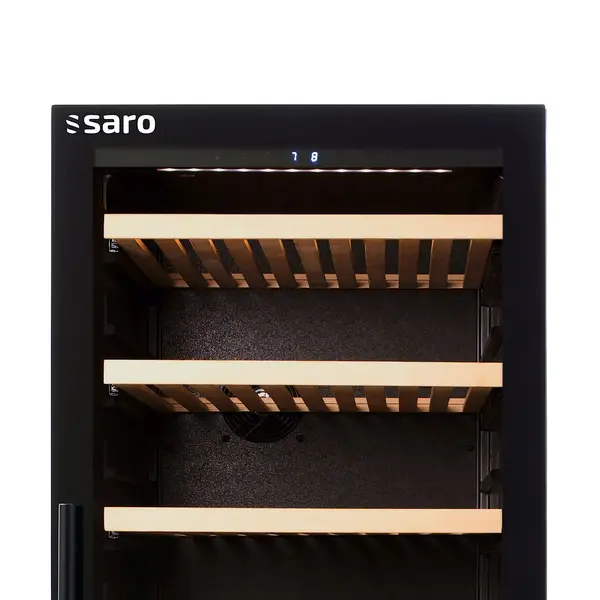 Deze hoogwaardige wijnkoelkast van Saro biedt alles wat nodig is om champagne, prosecco en diverse andere soorten wijnen op de perfecte serveertemperatuur te bewaren en tegelijktertijd aantrekkelijke te presenteren.