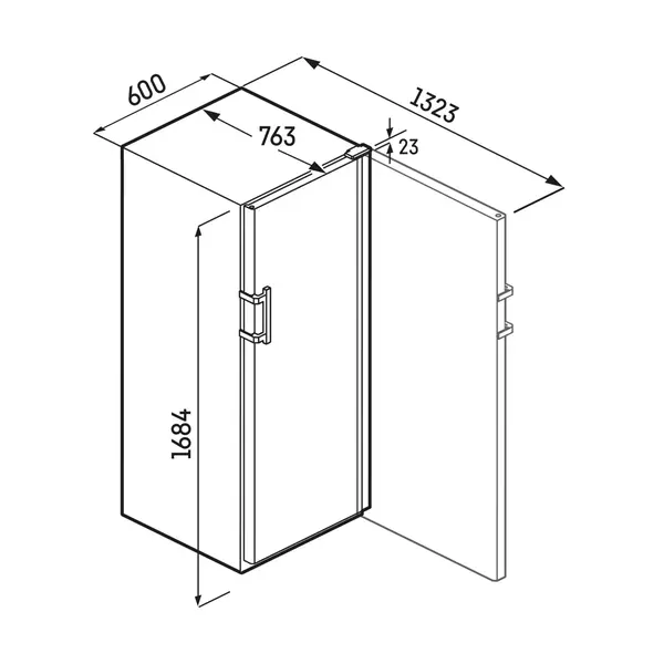 Binnenafmetingen: B 492 x D 587 x H 1470 mm