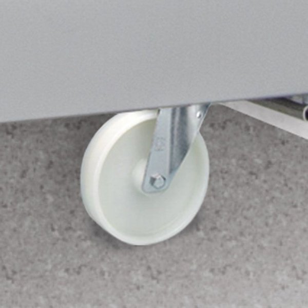 Bijna alle Inomak apparatuur is standaard voorzien van verstelbare rvs poten. Heb je liever zwenkwielen? Dat kan, deze set bestaat uit 2 geremde en 2 ongeremde zwenkwielen en wordt gemonteerd onder de bestelde apparatuur geleverd. Het wiel heeft een diameter van 95 mm, de totale hoogte van het zwenkwiel inclusief de montageplaat is 130 mm.